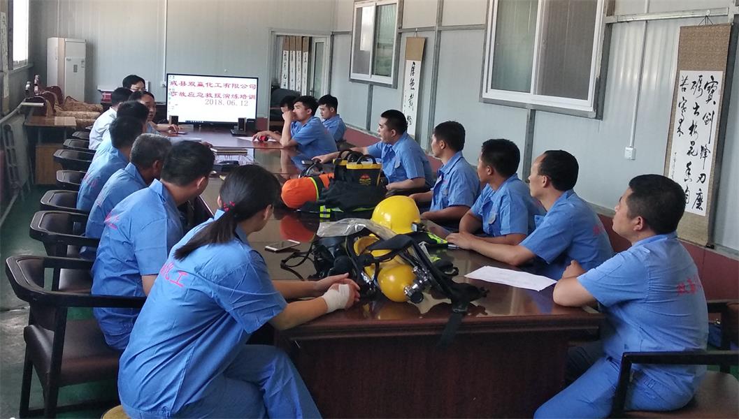 演練前,安全部及廠部相關(guān)領(lǐng)導(dǎo)對(duì)參演人員進(jìn)行演練培訓(xùn)和演練說明。