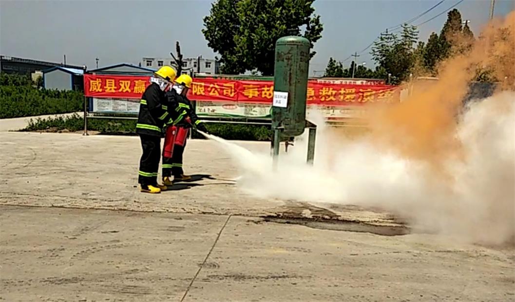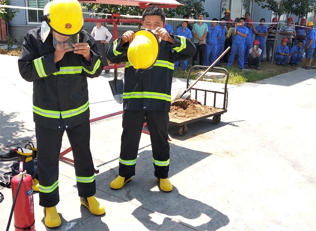 演練原料泄露,引發(fā)火災(zāi)進(jìn)行滅火救援。
