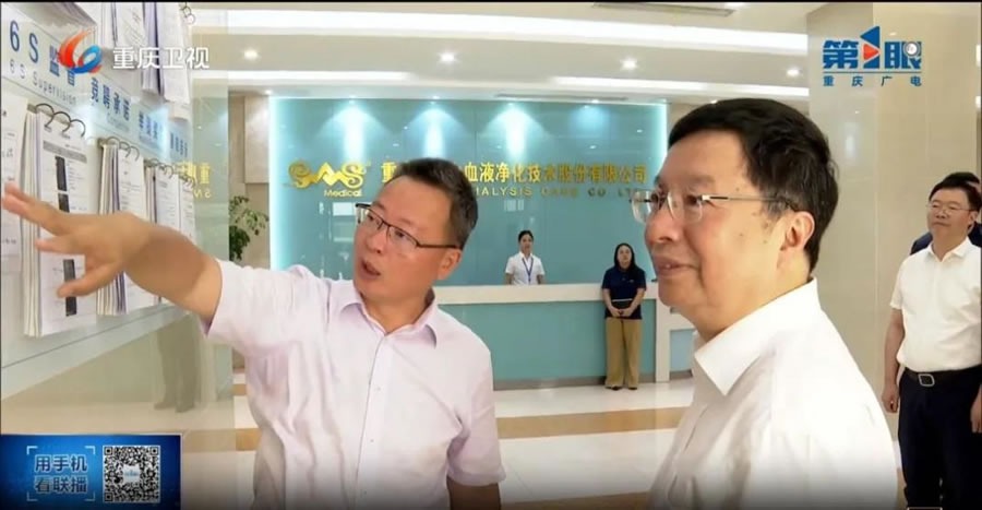 8月5日,重慶市委副書(shū)記、市長(zhǎng)胡衡華蒞臨重慶山外山血液凈化技術(shù)股份有限公司(“山外山”,科創(chuàng)板股票代碼:688410)調(diào)研。山外山董事長(zhǎng)高光勇陪同調(diào)研。
